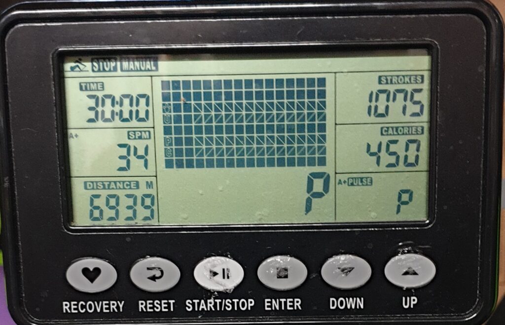 Thursday and I wake to my partner getting ready to go to the gym for more “bobbing about in the water” and needing me to move my car ,but not “right now”. I get my vitals done, all good, and then get into my training kit. By the time I am downstairs to take my morning meds my partner is on a face to face call with our youngest daughter so I join in before I have breakfast. My partner goes to the gym and I head for the garage and get onto the rower. Today I chose a 30 minute row having rowed yesterday with the intention of reaching my 6 kilometre goal. I set myself up and get going at a reasonable pace. By the end of the session I am knackered and desperately disappointed that my Fitbit has failed to record my session. As always I have taken a photo of the monitor so I know how I have done. It is a reasonable session and is definitely longer than a Boat Race, so go me!