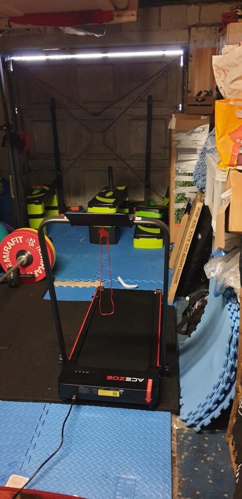 The weather is wet and miserable so when breakfast is over we drive home quickly to get back into somewhere comfortable. I change and begin the process of installing the new treadmill/walking plate in the garage. I unbox the beast in the office and extract the instruction manual and all the bits and pieces. For a while I read the manual trying to make sure I understand what I am doing in setting it up, I’m not sure I need to know how to use it as this is going to be my partners equipment. Once I know what I am doing, in terms of set up I unpack the machine and get my eldest daughter to carry it in the garage gym, where I have previously cleared a space by folding up the press bench and rowing machine. The instillation goes smoothly once I get the end with the power inlet at the right end. All that remains is for me to install the power cable safety protector which is arriving in the afternoon. In theory we are all set to be able to exercise without going to the gym, which will save us a lot of travel time and petrol cost. I will of course be taking up swimming soon.