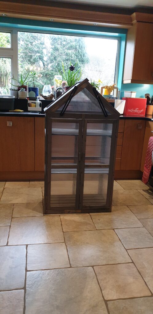 Monday and its time to get going on the projects, but first there is a call to the doctors to make. I need to book my 28 day injection. After some appalling hold music and some messages about vomiting blood I get through and as always they are very helpful and find me a slot at the same time as my hospital bloods are due. With that out of the way its meds time and breakfast. I’ve never quite mastered the art of soft boiled eggs even when I time them. So I end up with delicious buttery toast and very very soft eggs. With that done its “build a mini greenhouse” time.