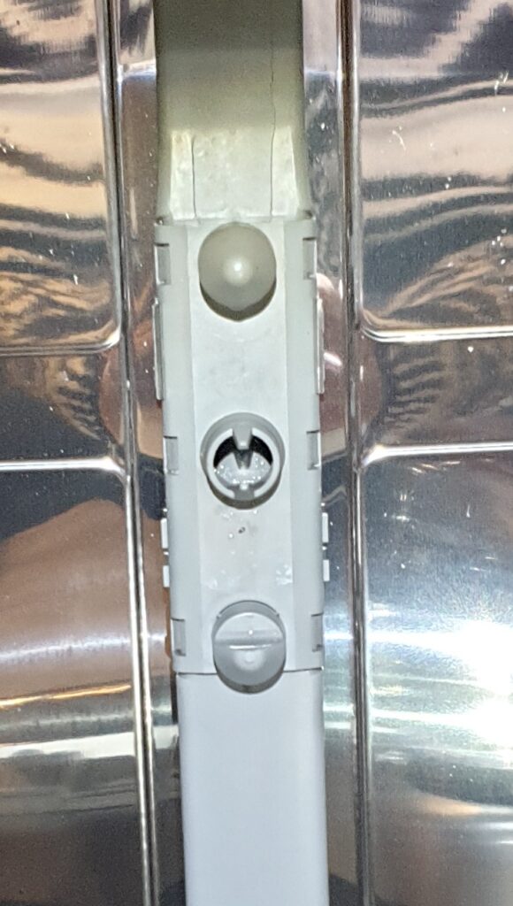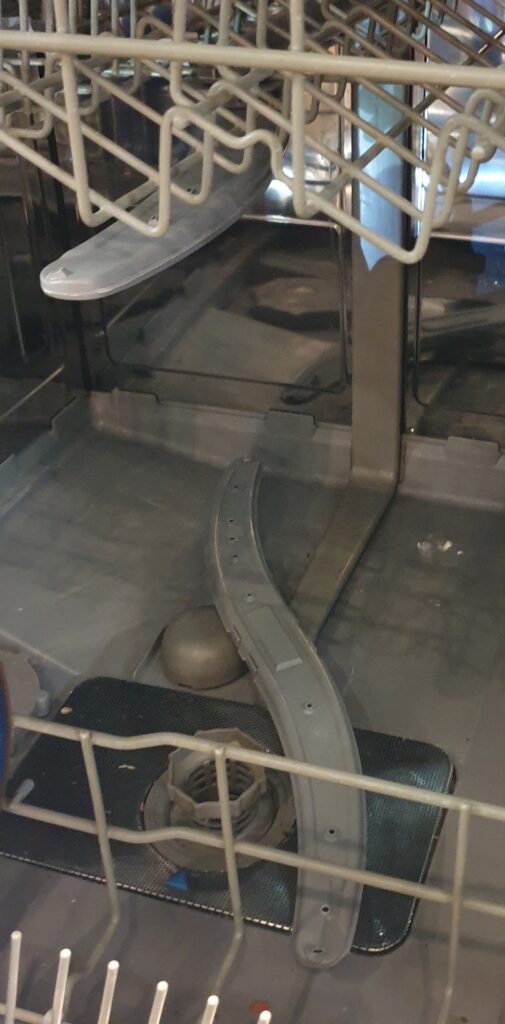 I started on the upper spray arm as I knew I would have to fit a new supply inlet on the back wall of the washer. I had seen it done on the video and remembered that just after she said “ease the metal clips with a flat head screwdriver and the inlet will pop out” there was an edit from screwdriver to the inlet popping out. Of course the metal clips did not yield so easily and the inlet did everything apart from “just pop out”. Eventually I got the damn thing out and was then faced with “just pop the new one on”. I did manage to get the thing into place but not without contorting myself in some weird yoga poses to reach the back of the washer. I breathed a sigh of relief and moved onto installing the new spray arm onto the underside of the upper basket. This was relatively simple, however this is where the mystery piece came into play. I think it was meant to be a spacer but the space it was supposed to go in was filled by the wire of the basket that anchored the spray arm end. I tried several possibilities from gentle coaxing to brute force but sometimes you just know that you cannot get two things into one space. In the end I decided that it was functional and left it alone. The putting in of the lower spray arm was a doddle and everything the videos said was true. I packed away my tools and set the dishwasher off on a half load test run. It is whirring as I type and I will soon know if my project has been a success.